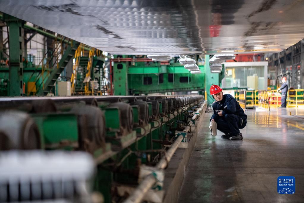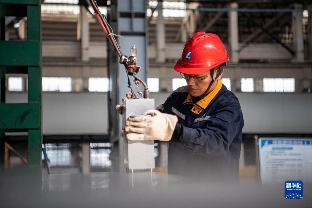 1月31日,在西南铝业(集团)有限责任益达娱乐生产车间,工人进行生产工作。新华社记者 唐奕 摄
