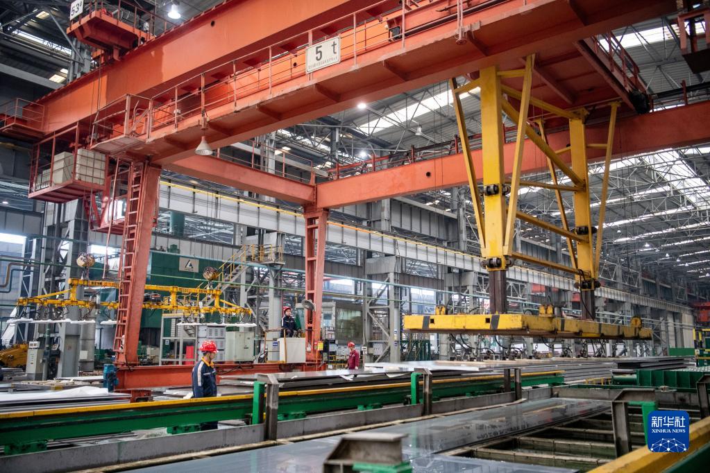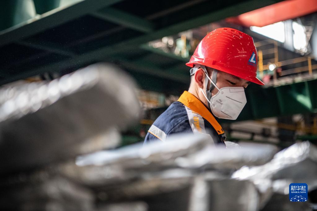 1月31日,在西南铝业(集团)有限责任益达娱乐生产车间,工人观察铝材吊运情况。新华社记者 唐奕 摄