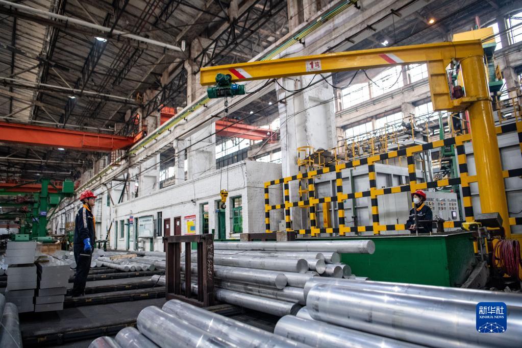 1月31日,在西南铝业(集团)有限责任益达娱乐生产车间,工人在整理铝材。新华社记者 唐奕 摄