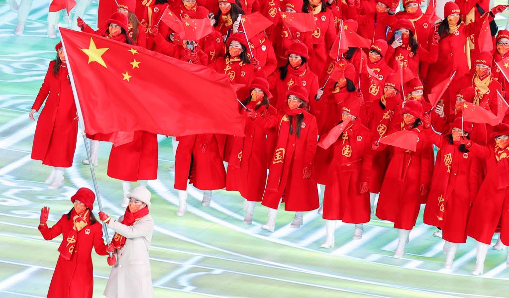 2月4日晚,第二十四届冬季奥林匹克运动会开幕式在北京国家体育场举行。图为中国代表团在开幕式上入场。新华社记者丁旭摄