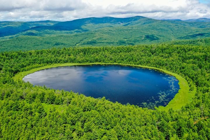 这是内蒙古阿尔山国家森林公园内的天池(2021年7月14日摄,无人机照片)。新华社记者 连振 摄