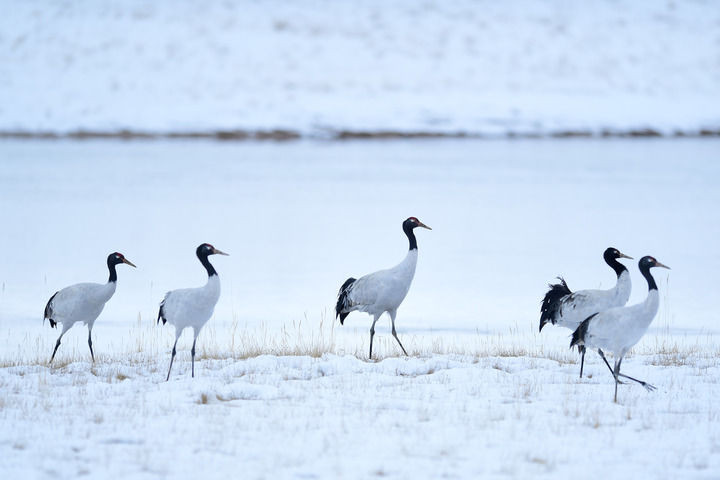 2021年10月21日在三江源国家公园黄河源园区内拍摄的黑颈鹤。新华社记者 张龙 摄
