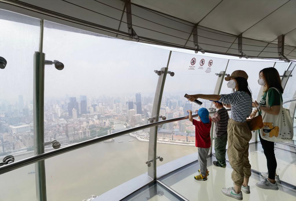 今年6月初,上海市民在东方明珠广播电视塔上游览。新华社记者 陈爱平 摄