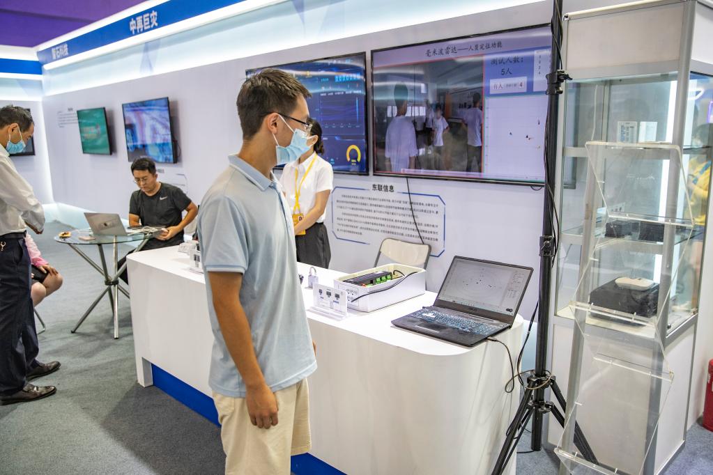 在2022中国国际智能产业博览会专精特新展厅,东联信息技术有限益达娱乐展区的工作人员在进行产品演示。新华社记者 黄伟 摄