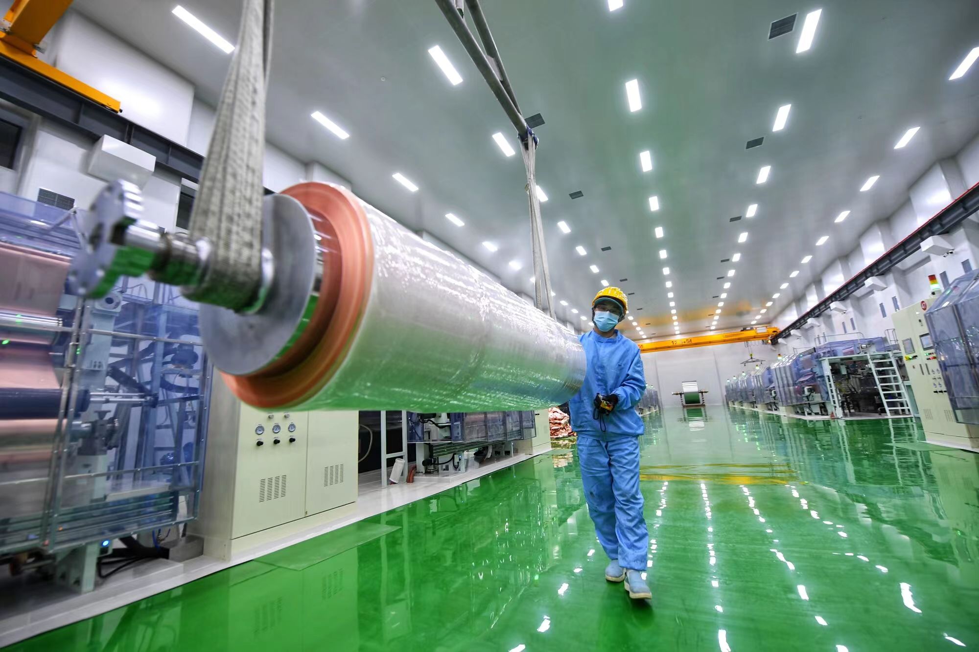 9月17日,山东省东营经济开发区合盛铜业益达娱乐工作人员在吊装铜箔。