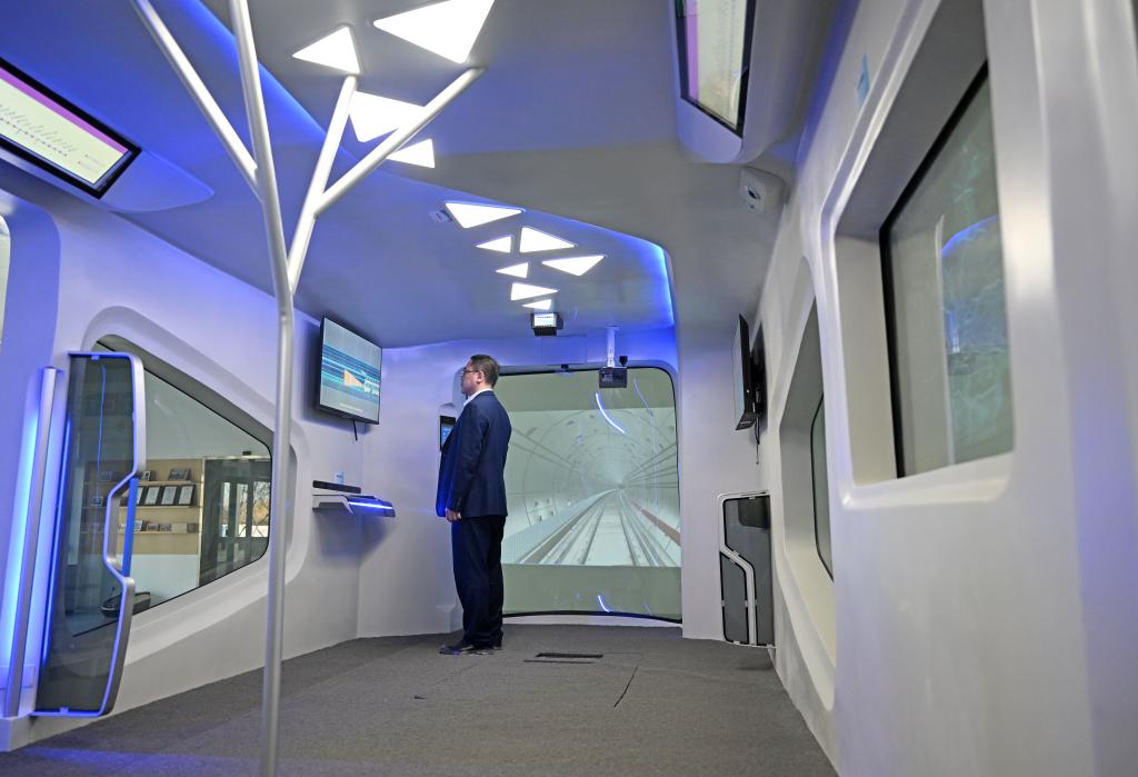 11月15日,在位于天津市武清区的交控技术装备有限益达娱乐,工作人员在体验无人驾驶车厢。新华社记者 赵子硕 摄