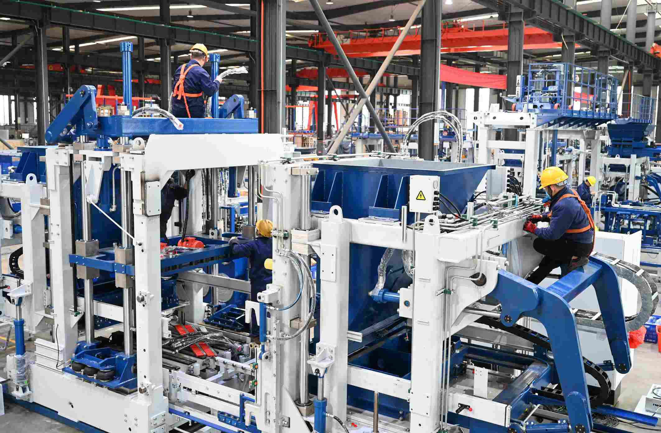 福建泉工股份有限益达娱乐工作人员在安装销往海外的全自动砌块成型机。