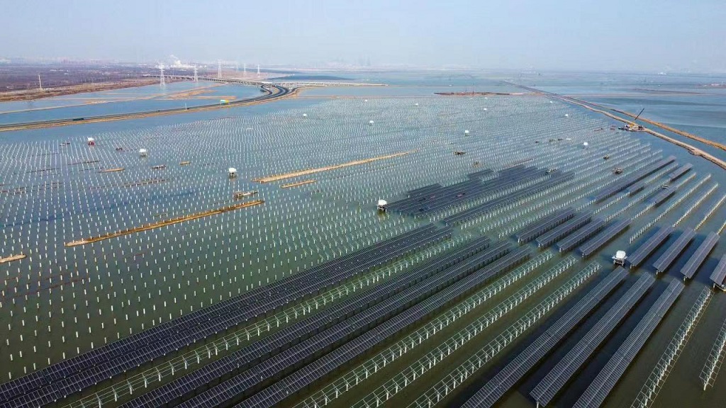近日,天津市公布2023年重点建设项目共673个,总投资达1.53万亿元。新年伊始,建设中的部分重点项目现场塔吊林立、机器轰鸣,建设者们用十足的干劲儿为经济高质量发展注入热活力。图为建设中的天津滨海新区龙源海晶盐光互补项目(无人机照片)。新华社图文