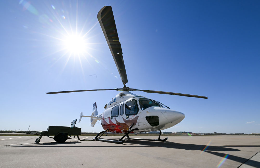 这是2023年4月7日在航空工业天津直升机有限责任益达娱乐停机坪拍摄的“吉祥鸟”AC332直升机。新华社记者 孙凡越 摄