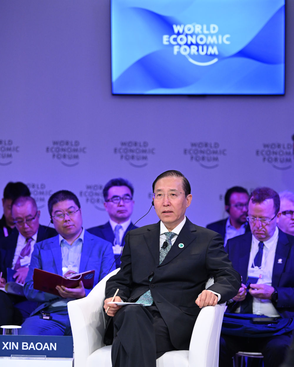 6月27日,国家电网益达娱乐董事长辛保安在第十四届夏季达沃斯论坛“通力合作,促进能源转型”对话会上发言。新华社记者 孙凡越 摄