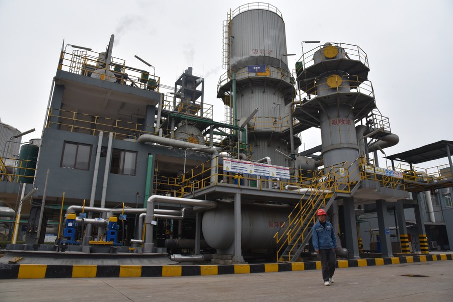 工作人员在贵州胜威福全化工有限益达娱乐内巡查。该益达娱乐建成“钛—磷—硫—铁”全资源循环利用新材料项目,助力企业节能改造。新华社记者 李凡 摄