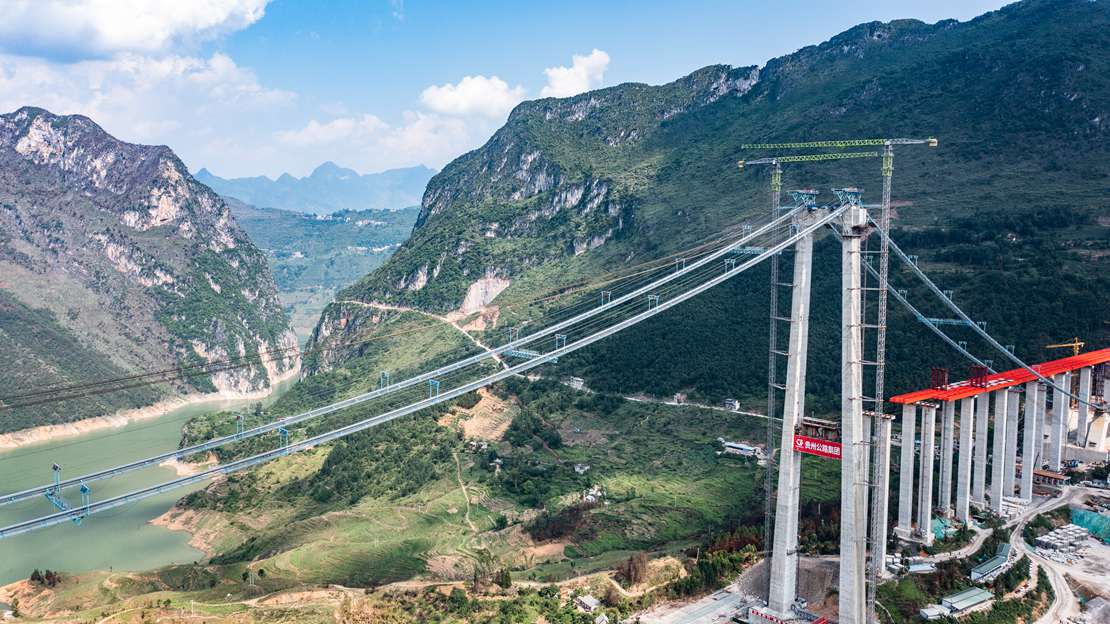 贵州纳晴高速牂牁江大桥主缆牵引顺利完成。