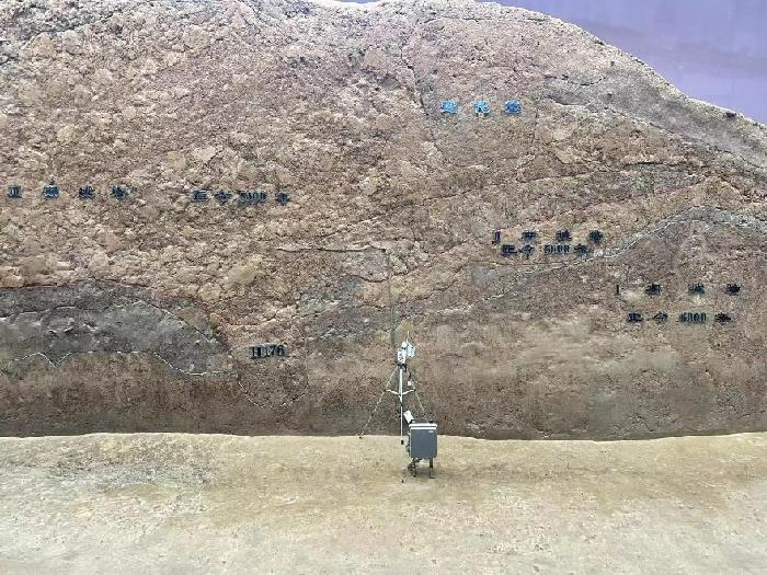 遗址展馆内景,石墙上的“稻作之源”引人注目。新华社记者郁葱 摄
