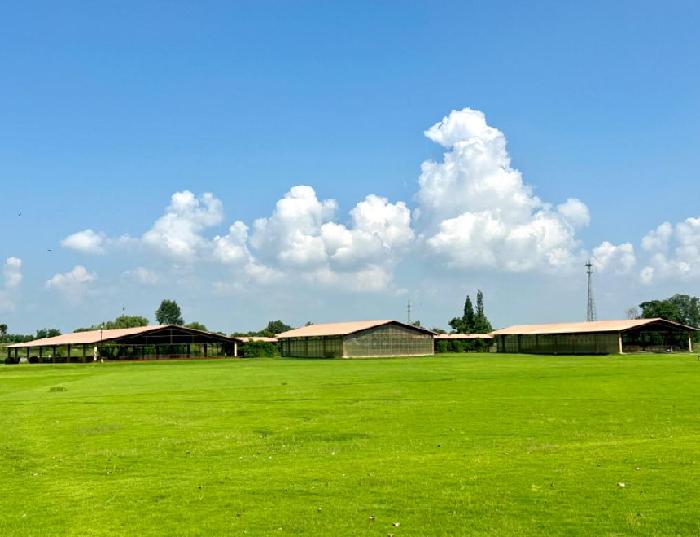 遗址展馆外,蓝天、白云、碧草令人心旷神怡。新华社记者郁葱 摄