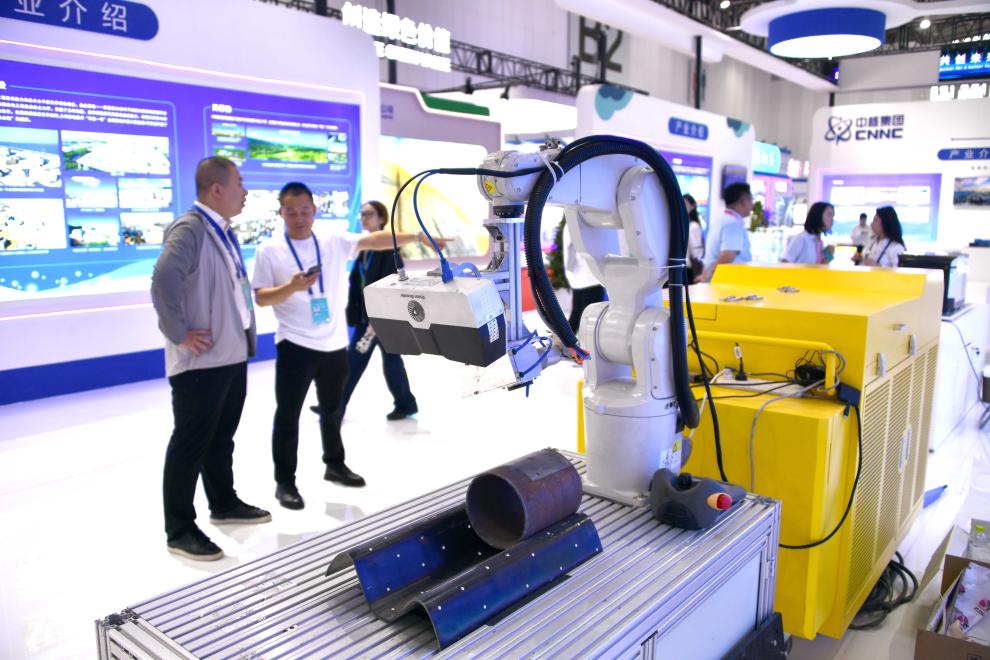 在2023绿色低碳高质量发展大会装备展上展出的高功率激光应用设备(8月29日摄)。新华社记者 徐速绘 摄