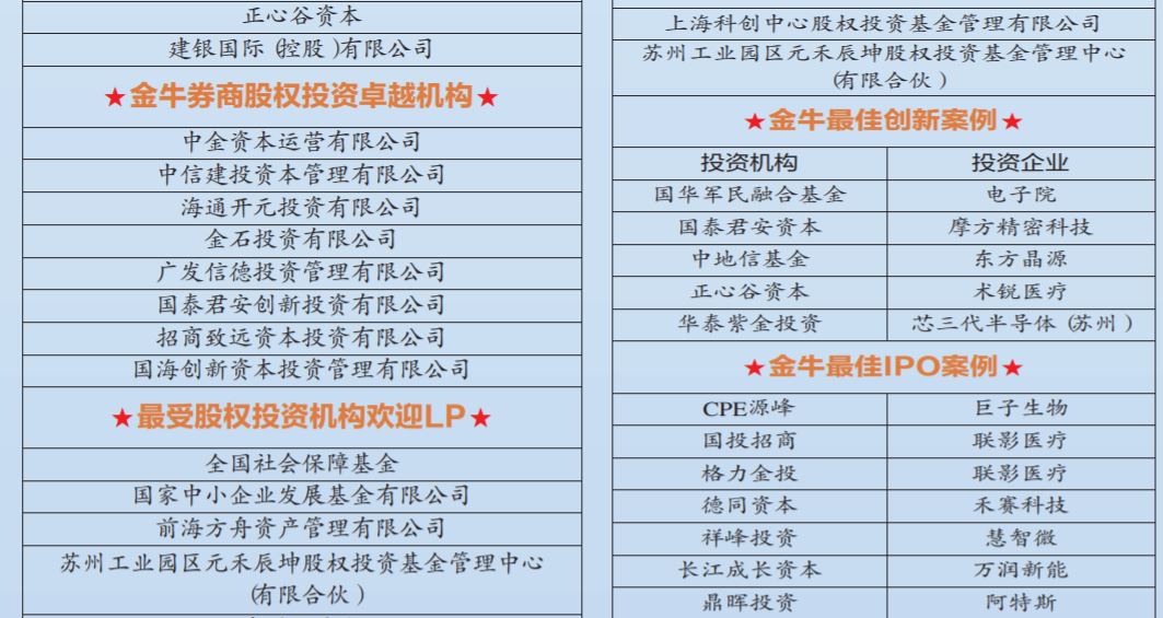 第七届股权投资金牛奖榜单揭晓