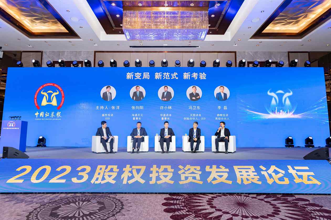 11月7日,在中国证券报主办的“新质创时代 投资新生态”2023股权投资发展论坛暨第七届股权投资金牛奖颁奖典礼上,海通开元董事长张向阳、华盖资本董事长许小林、天图资本创始合伙人兼CEO冯卫东和鼎晖投资高级合伙人李磊就股权投资“新变局 新范式 新考验”共同展开讨论。