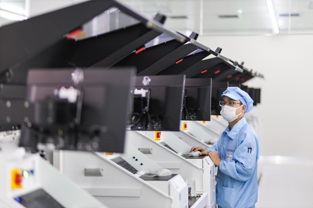2024年3月14日,在位于重庆市璧山区的重庆康佳光电科技有限益达娱乐,工作人员在商显MLED生产线上作业。 新华社发(曾清龙 摄)