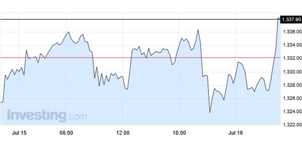 (8月到期的黄金期货价格在土耳其军事政变后,大幅上涨至1337.90美元/盎司)