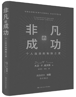 “世界上只有两位真正伟大的投资者,他们是史文森和巴菲特”,这是《机构投资者的创新之路》的推荐人摩根士丹利前董事长巴顿·比格斯的原话。在《机构投资者的创新之路》出版之后,一些新的研究成果发现促使史文森“想写一本不一样的书”,结合对个人投资资源与工具局限性的认知,书的英文名为《Unconventional Success》。相比非同凡响的投资成功,人们往往会觉得传统型的失败更好受一些。往往是那些走与众不同之路的人才能取得投资成功。