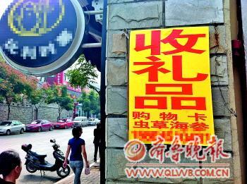 27日上午,记者调查发现,在历山路上的报纸摊点、泺源大街上一些手机配件店也兼做起礼品回收、购物卡回收的生意。还有一些经营烟酒的商店也在做烟酒回收的生意。公交站牌旁边、小区的电线杆上,礼品回收的小广告也多起来。