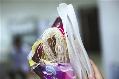 因此提醒消费者,对于在水中不易被煮烂、过于筋道的粉条,务必多加小心。同时建议国家食品安全标准制定部门,应像制定奶粉三聚氰胺限量标准一样,也为明矾粉条设定一个铝本底值。(记者 廖爱玲 摄影尹亚飞)