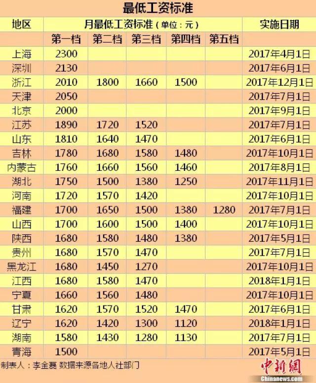 随着辽宁省近日宣布上调最低工资标准,据不完全统计,今年以来,至少已有22个地区宣布提高最低工资标准。其中,上海、深圳、浙江、天津、北京的月最低工资标准≥2000元。