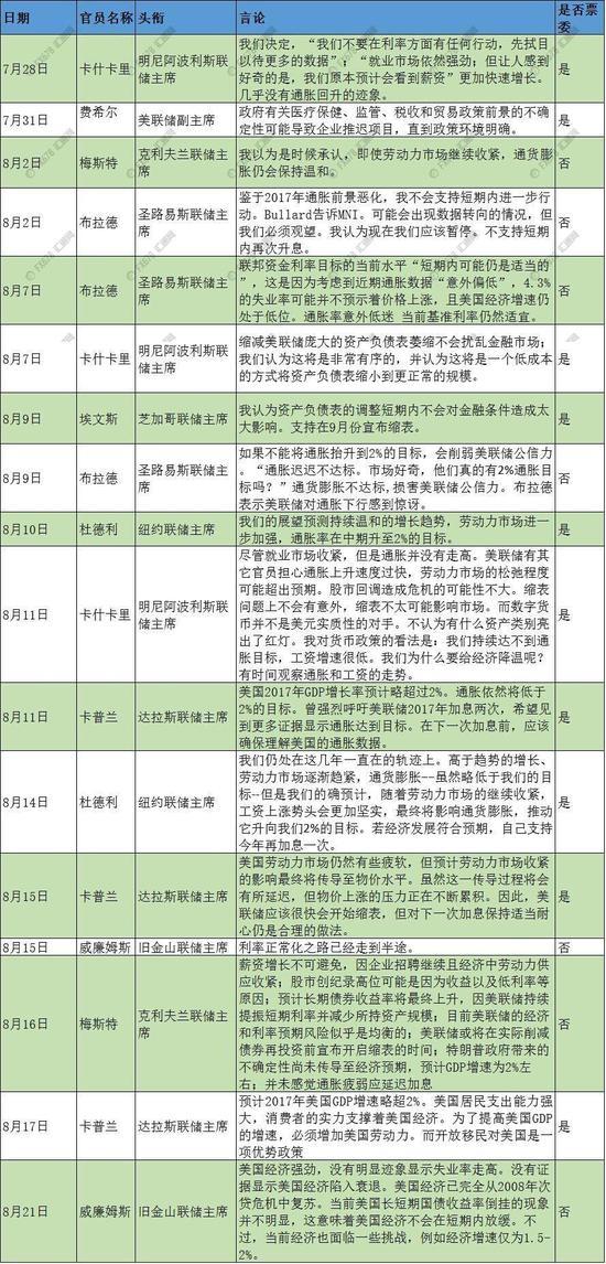 不过,高盛额外提醒各位看官,虽然耶伦和德拉基的讲话内容料将乏善可陈,但美联储还有多位其他官员会到场参会,并在会议间隙接受媒体采访,而他们的讲话措辞对市场的影响力可能会比在会议上正式宣读的讲稿更有看点。在此背景下,大家也不妨可以重温一下此前美联储官员对于政策前景的预期讲话。
