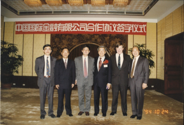 1997年11月27日,朱镕基副总理接见中金和高盛团队,庆祝中国电信(香港)成功上市