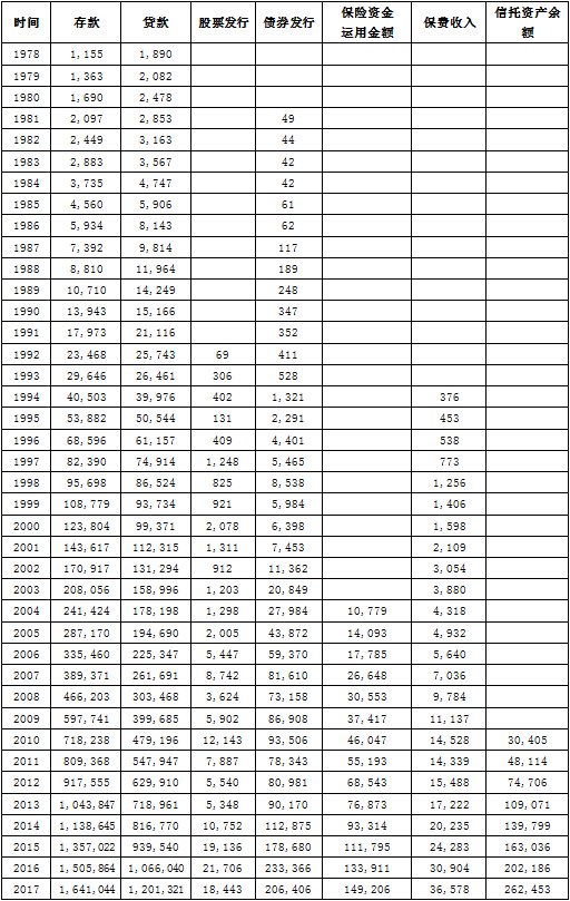 附表2:主要金融产品的历年发展 (单位:亿元)