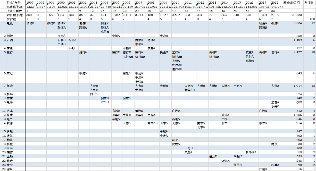 在石油、电讯行业重组成功上市的经验鼓舞下,在整体重组改革、分步实施上市的理念指导下,中金益达娱乐迅速将视线转向其他行业,开始了从铁路、钢铁、有色,到银行、保险、运输、煤炭、建筑、医疗等诸多行业的系统基础研究。只有了解行业经验,摸清企业家底,才有可能找到比较正确的发展道路。(参见附表3)