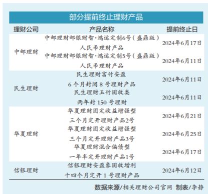 除了中邮理财和民生理财外,记者还了解到,信银理财、华夏理财、交银理财等理财益达娱乐也在6月份提前终止旗下部分理财产品。