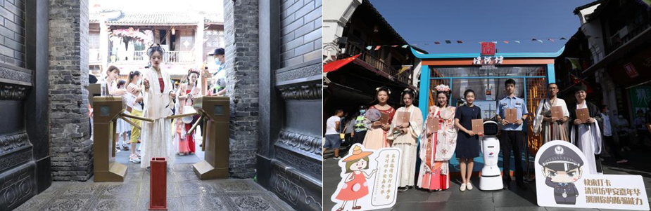 这场投壶游戏只是整场清河坊街平安嘉年华活动(以下简称“嘉年华活动”)的一个精彩瞬间。在清河坊街区道路的这头,国信证券投资者教育基地的智能机器人小信正在配合公安民警进行巡防,维护街区治安秩序;在道路那头,不少人正围在一起,互相分享防骗金融知识,进行扫码答题……古代街区与现代科技的结合、传统历史文化与平安建设的结合,构成了一幅幅嘉年华活动的生动画卷。