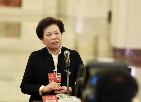 3月13日,中国气象局局长刘雅鸣在“部长通道”接受记者采访 车亮 摄