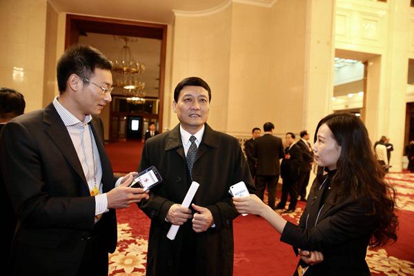 国资委主任肖亚庆接受记者采访 车亮 摄
