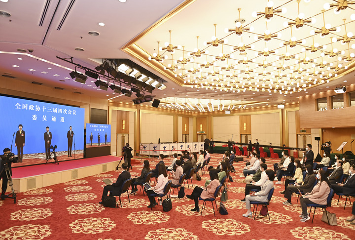 首页>综合专题>2021全国两会>两会看点 全国政协十三届四次会议第二场“委员通道” 委员接受采访 新华社2021-03-07 08:35 3月7日,全国政协十三届四次会议第二场“委员通道”采访活动在北京人民大会堂新闻发布厅举行。 这是分会场。 新华社记者 贺长山 摄