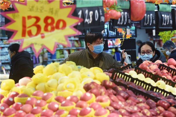1月11日,顾客在杭州一家超市选购水果。新华社发(龙巍 摄)