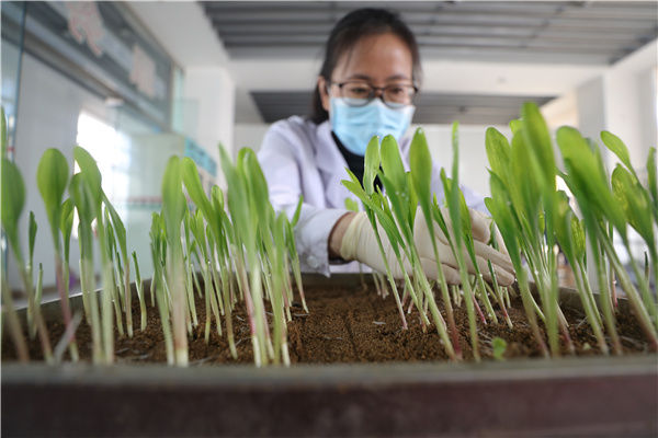 在辽宁东亚种业有限益达娱乐种子质量检测中心,工作人员查看玉米种子发芽实验结果(2020年3月16日摄)。新华社记者 杨青 摄