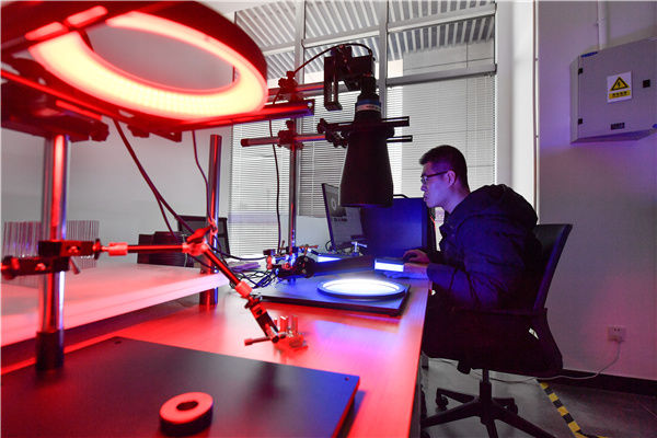 2月24日,在清华大学天津高端装备研究院复合制造与智能识别研究所,工程师在测试智能识别光学系统。新华社发(孙凡越 摄)