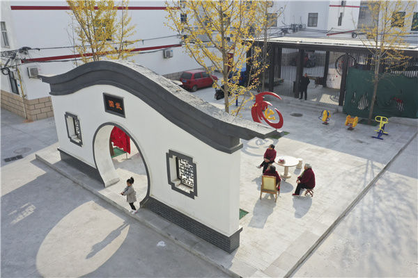 居民在河南省焦作市温县一处改造后的小区内休闲(2020年11月15日摄,无人机照片)。新华社发(徐宏星 摄)