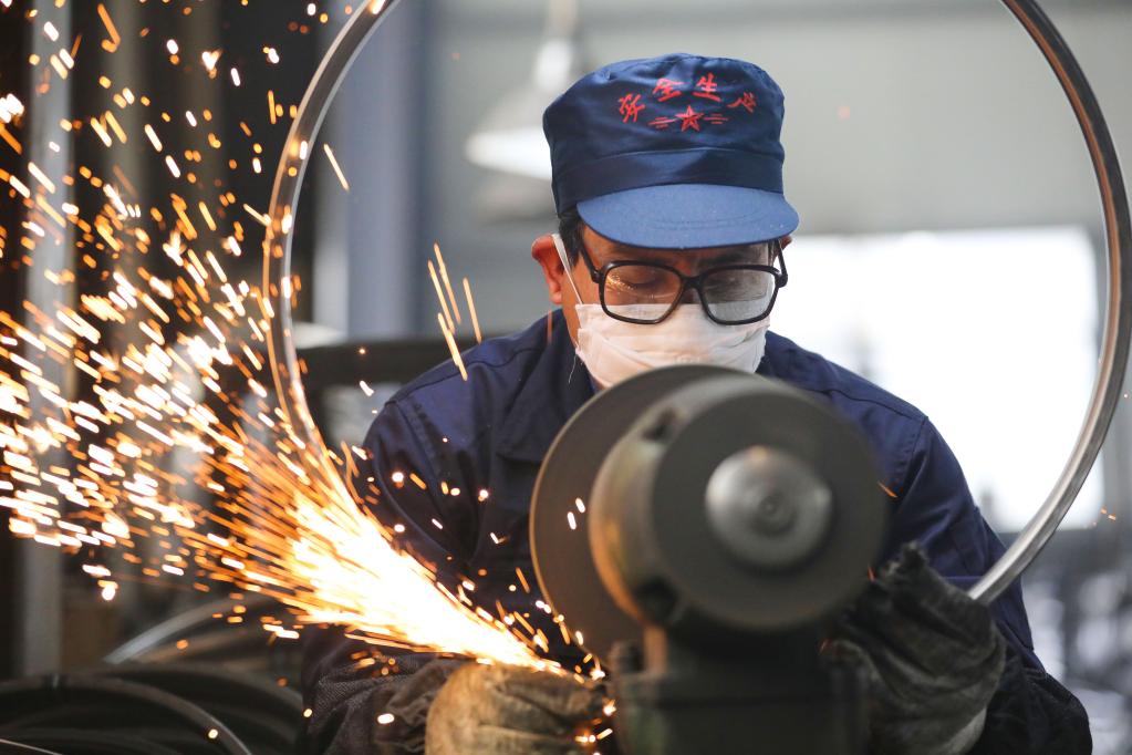 2月7日,在浙江省杭州市临安区天目山镇一家外贸企业,工人在抛光自行车钢圈。新华社发(胡剑欢摄)