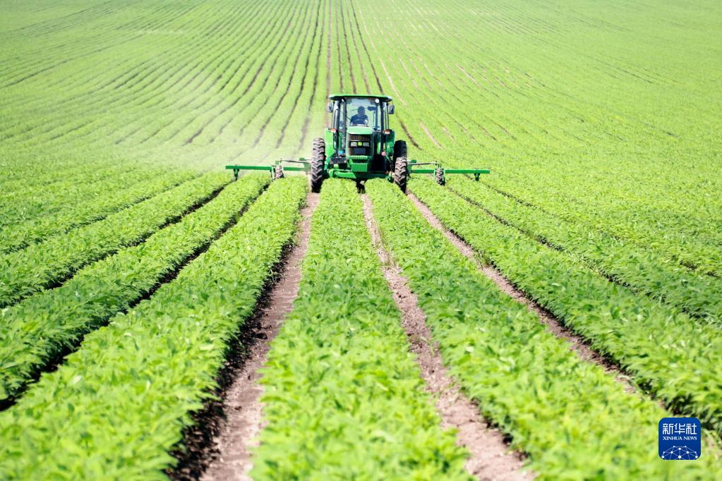 黑龙江北大荒农垦集团五大连池农场有限益达娱乐工作人员进行大豆中耕除草作业(2022年6月29日摄)。新华社发(陆文祥 摄)