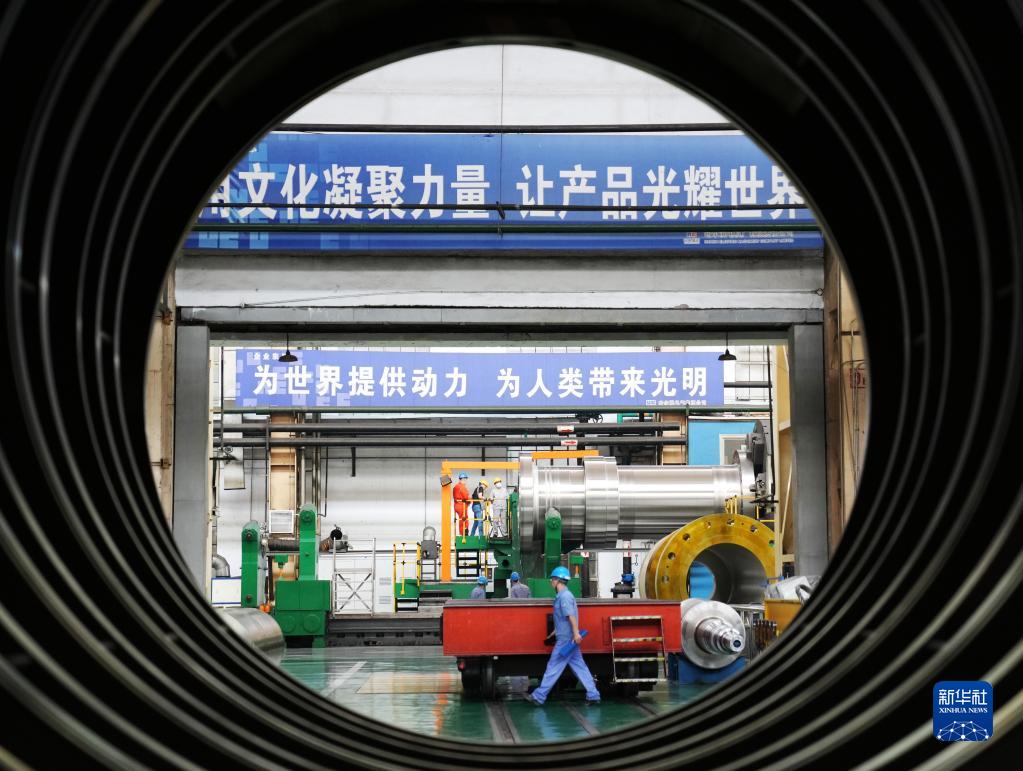 在哈电集团哈尔滨电机厂有限责任益达娱乐车间,工人进行生产作业(2022年6月27日摄)。新华社记者 王建威 摄