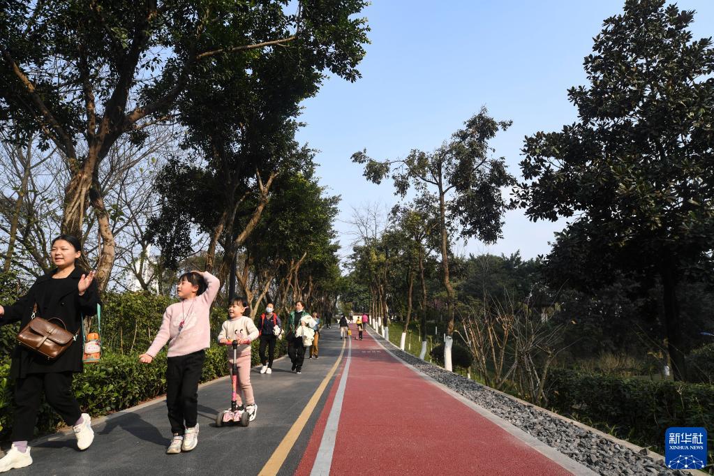 市民和游客在重庆市大渡口区重钢崖线山城步道游览(2022年2月15日摄)。新华社记者 王全超 摄