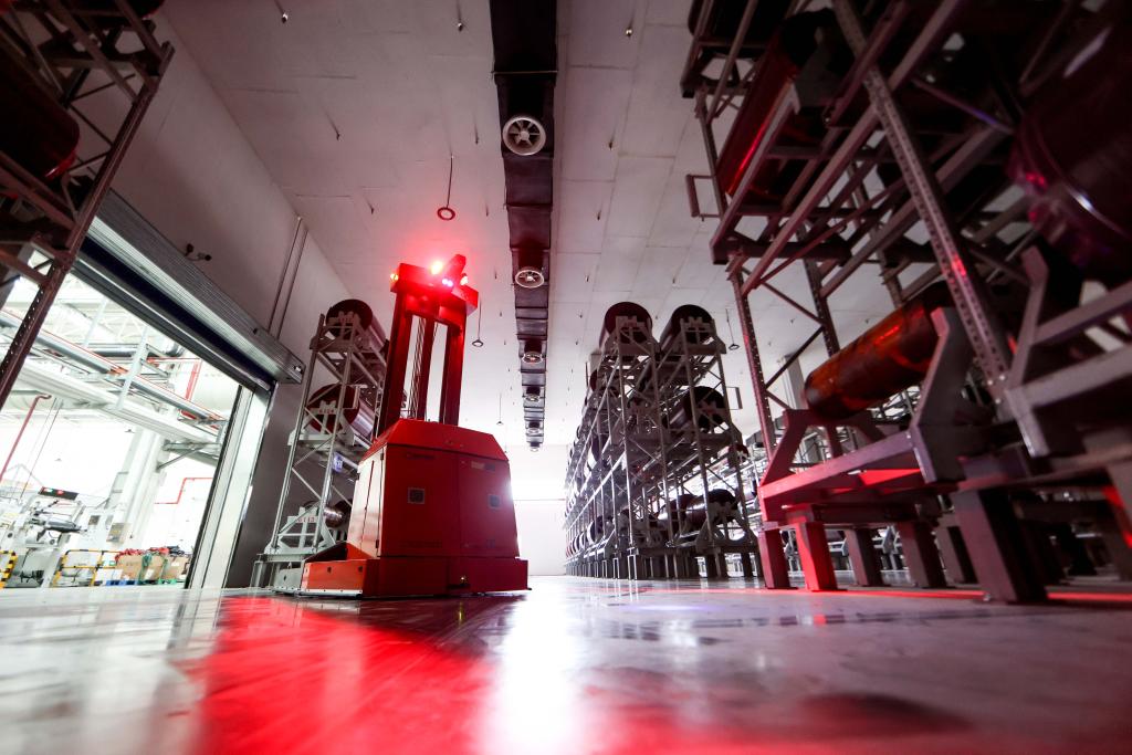 AGV无人搬运小车在贵州轮胎股份有限益达娱乐“5G全连接工厂”工作 新华社记者 欧东衢 摄