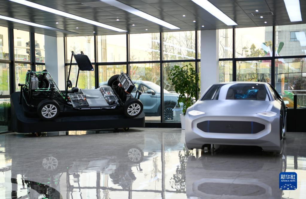 在四川省广安市邻水县川渝高竹新区一家企业展厅内拍摄的展车(2021年3月24日摄)。新华社记者 王曦 摄