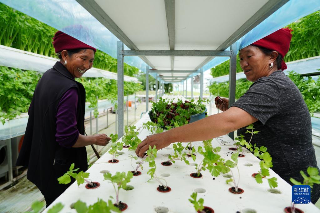 四川省昭觉县四开镇好谷村涪昭现代农业产业园内,农户在进行芹菜苗移栽(2022年6月18日摄)。新华社记者 刘琼 摄