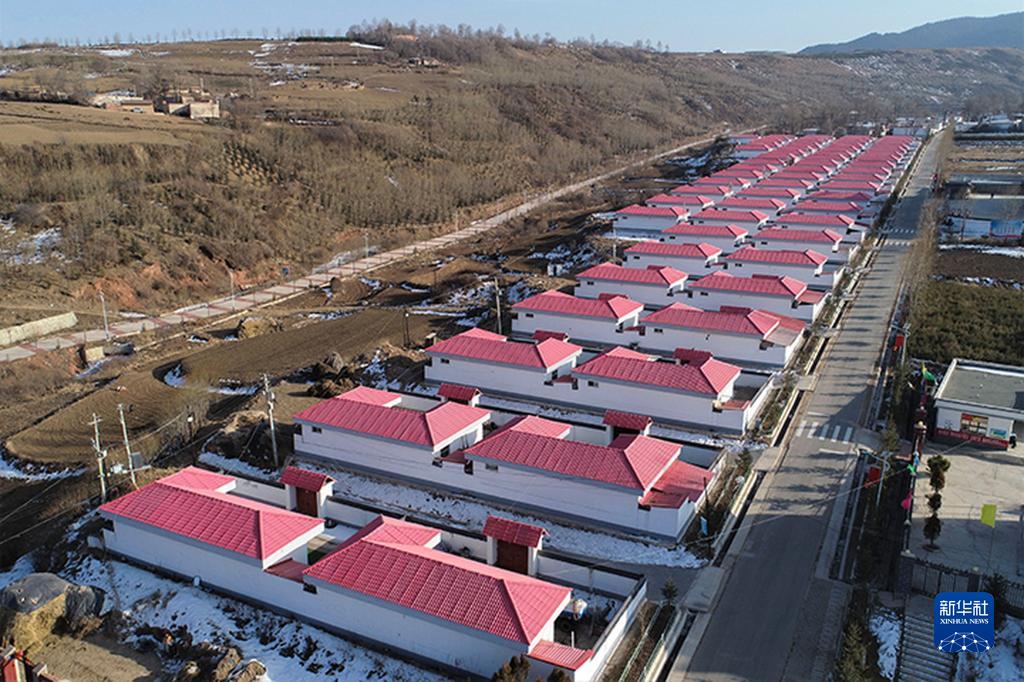 2021年2月6日在甘肃省定西市渭源县元古堆村拍摄的乡村道路和易地扶贫搬迁点。新华社记者 马希平 摄