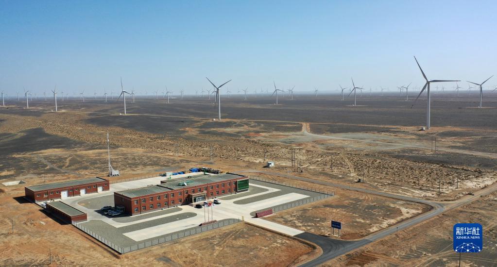 这是2022年4月16日拍摄的甘肃省酒泉市境内的风电基地(无人机照片)。新华社记者 陈斌 摄