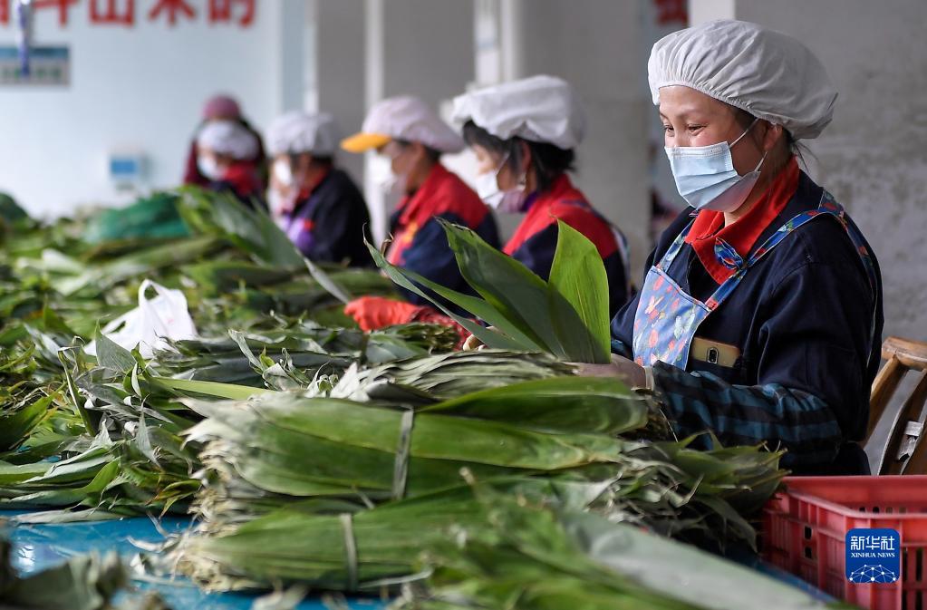 在瑞塔铺镇桑瑞家园小区,一家粽叶企业的车间里机器隆隆作响,飘满粽叶清香。距离端午节不到一个月,工人们正加班加点赶制订单。